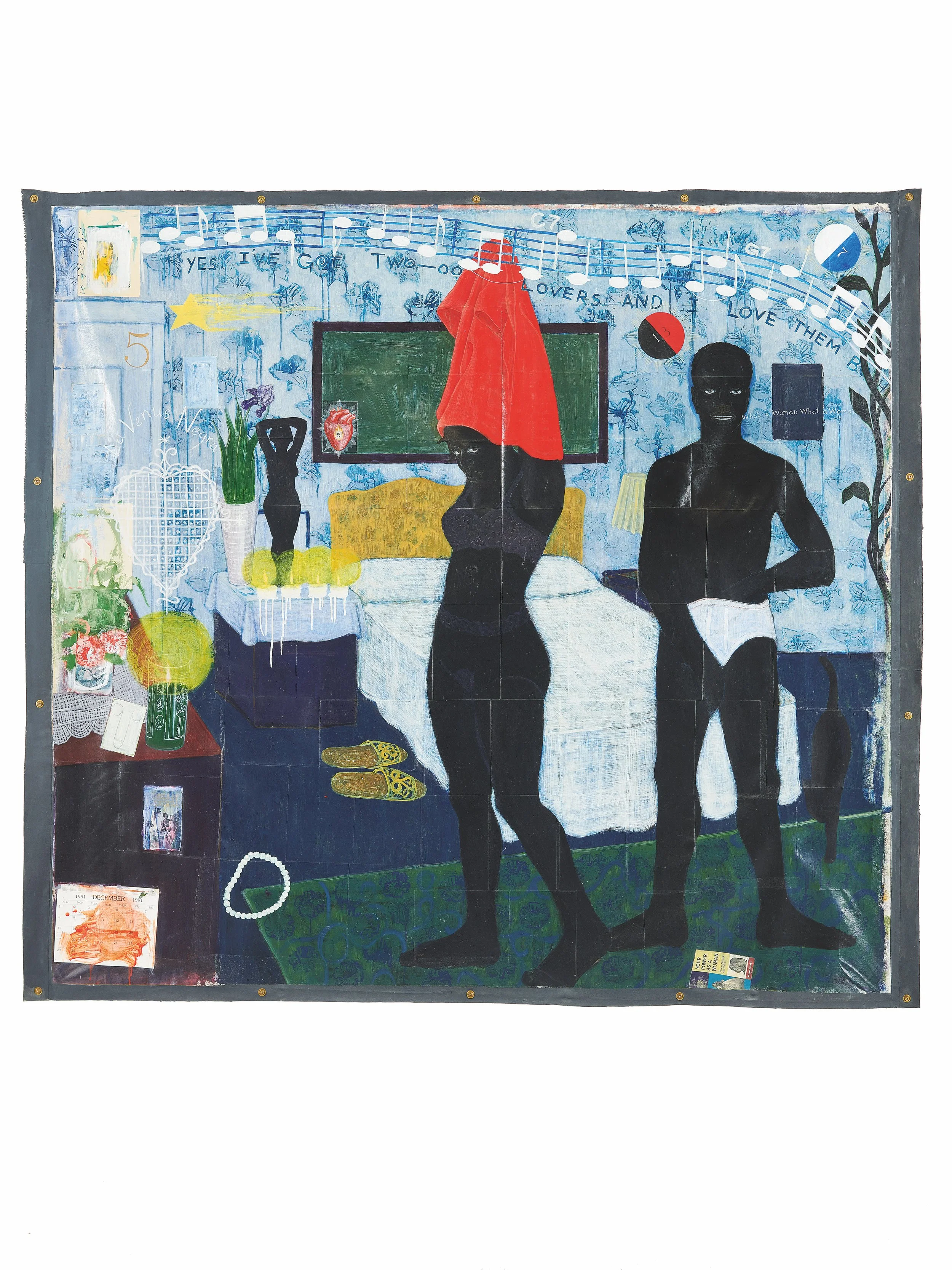Kerry James Marshall, Could This Be Love, 1992. Acrylic and collage on canvas, 261.6 × 289.6 cm. Pinault Collection, Paris. © Kerry James Marshall. Photo: Maxime Verret